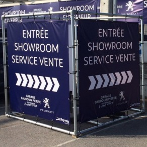 Les cadres pour bâche tendue peuvent être utilisés en fond de stand, d'évènement ou dans un show room.