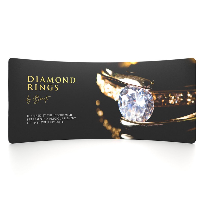 Le mur d'images textile courbé en aluminium anodisé simple et rapide de mise en place est le support adéquat pour tous vos évènements professionnels, conférence, exposition ou sur point de vente.